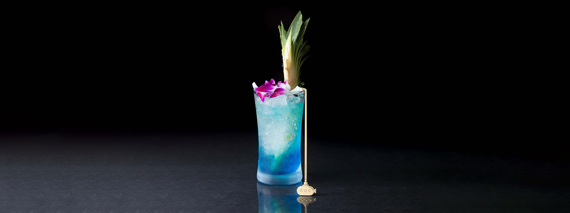 海と潜水艦をイメージしたイギリスのスピリッツ“ジン”がベースの清涼感あるカクテル。ジン固有のジュニパーベリーの香りと南国フルーツのトロピカル感のある味わいが融合した、見た目にもインパクトのある一杯です。