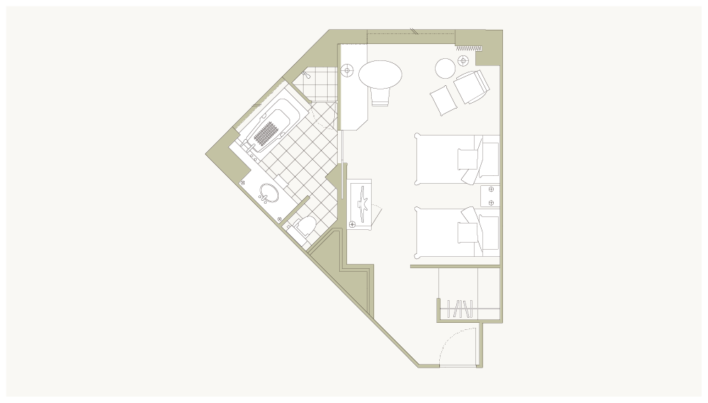 お部屋の間取りはあくまで一例です。面積や家具の配置、備品などはお部屋により異なりますので、あらかじめご了承ください。