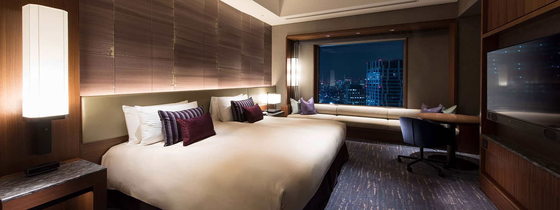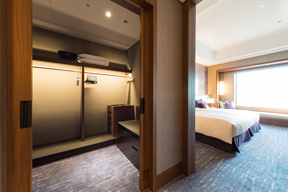 室内には、作家の想いの込められた作品を飾った棚や、窓側には東京の景色を眺めることができるカウンターバー、ベッドルームにはワインを傾けながら寛げるビルトインソファを配置。機能性とデザイン性を兼ね備えたスイートルームで、日本のアートの美しさを堪能する優美なホテルステイをお楽しみください。