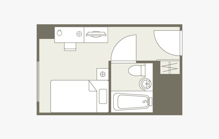 The room layouts shown are just examples. Please note that the size, furniture arrangement, and fixtures vary depending on the room.
