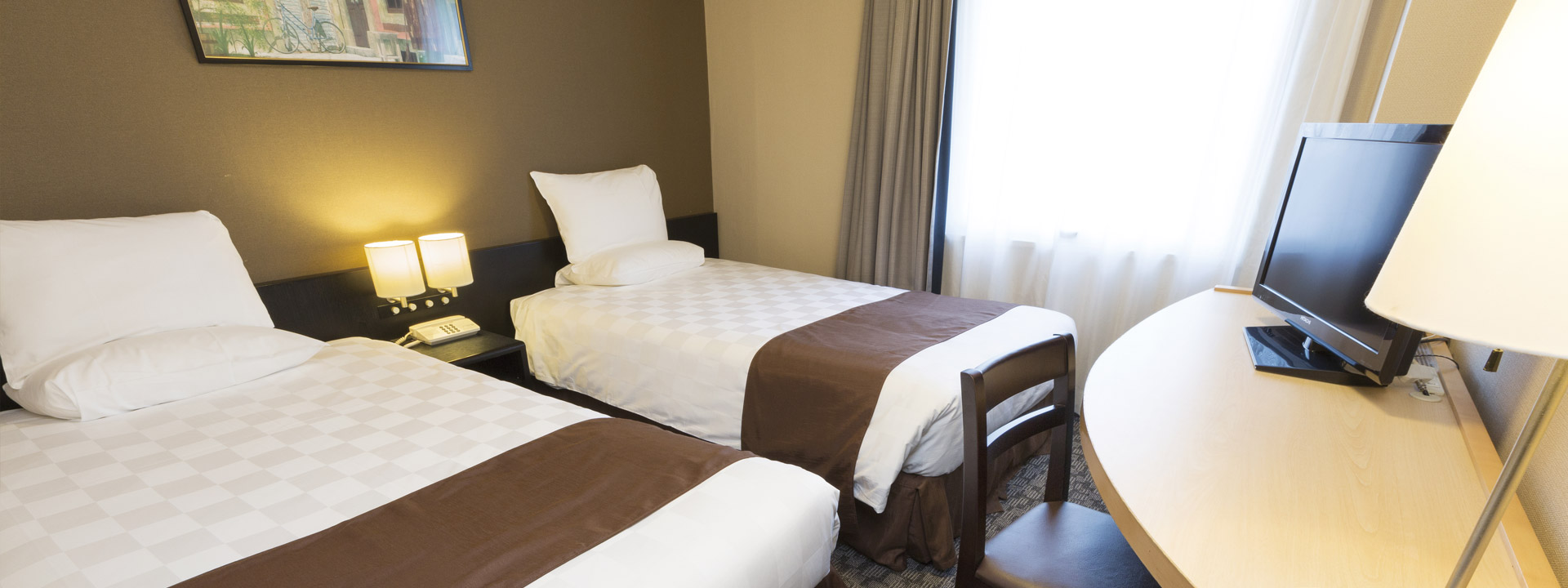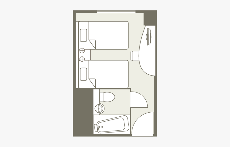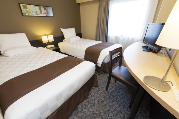The 17.4㎡ room is a standard twin room and can accommodate up to 3 people with an extra bed.