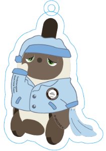 Acrylic keychain featuring Mizuki in pajamas rubbing her eyes sleepily.