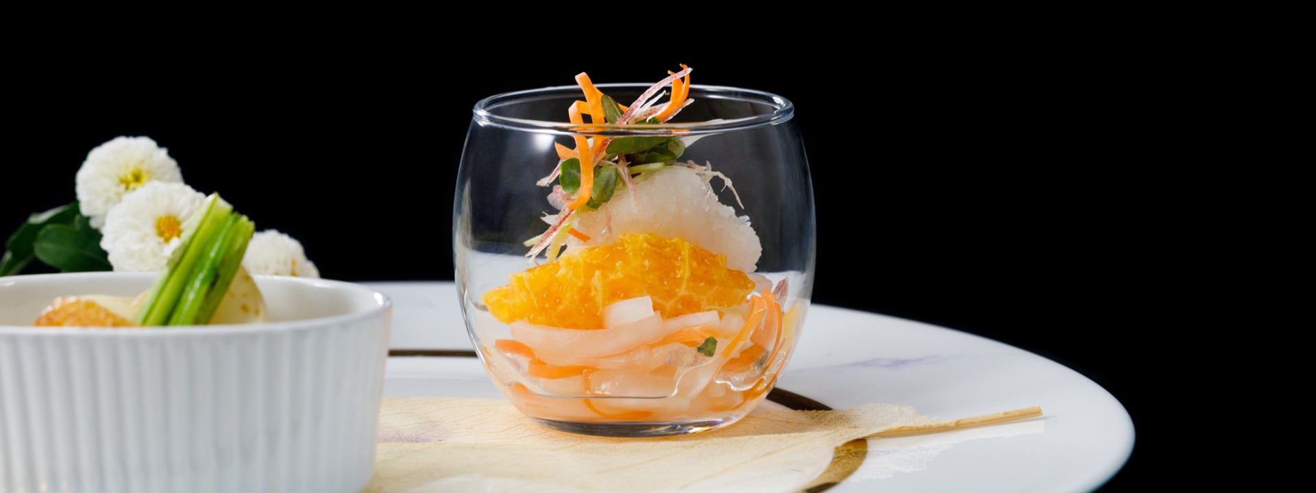 A creative Japanese and Western-style course meal that can be easily enjoyed with chopsticks