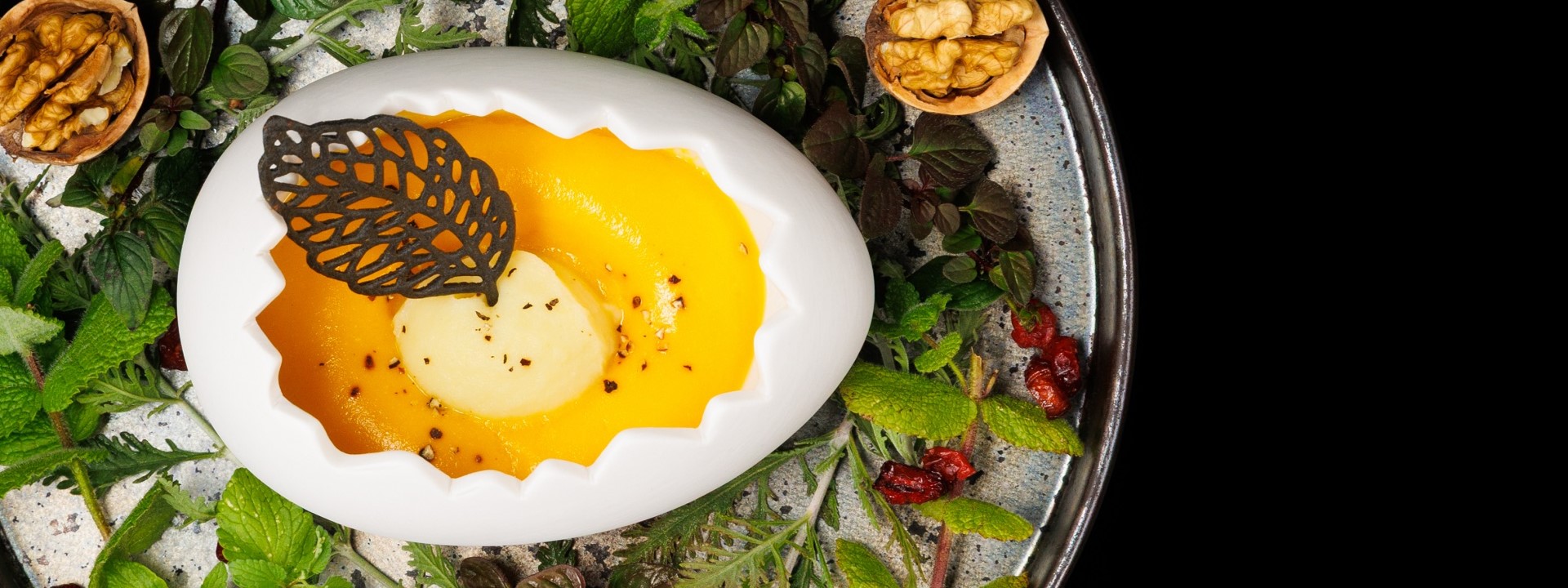 Cream soup with pepper miso aroma