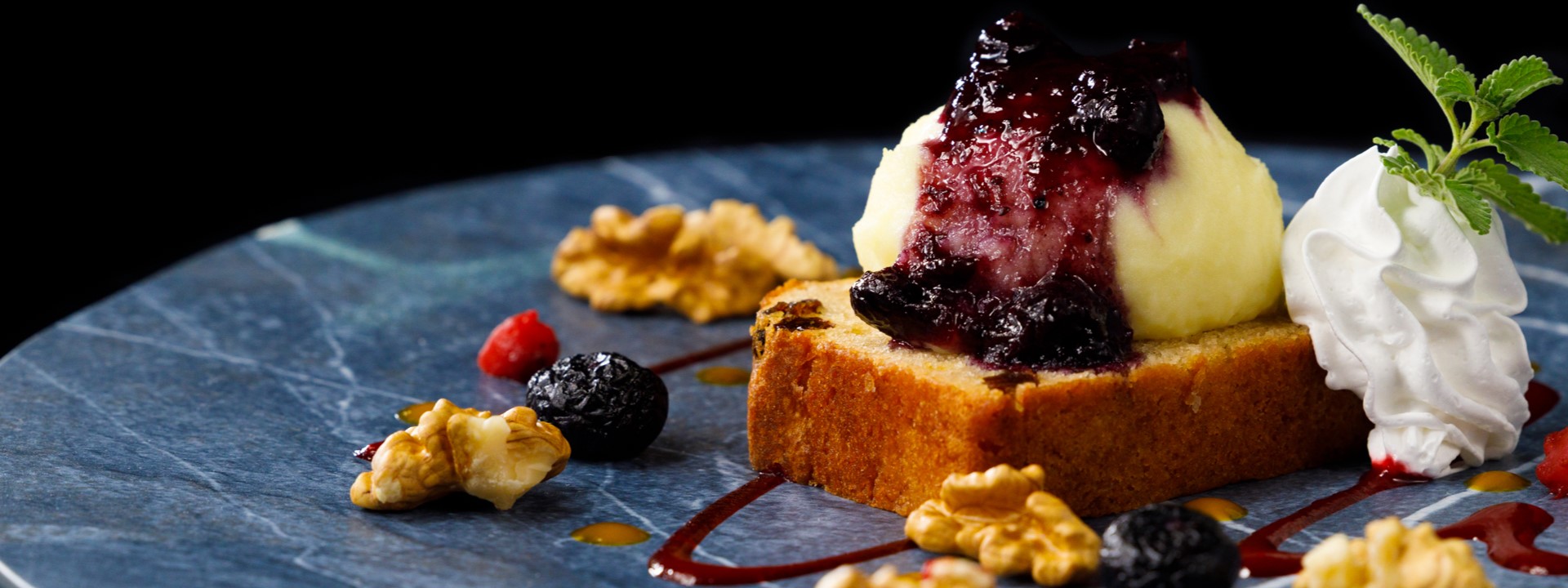 Today's cake & vanilla ice cream with berry sauce