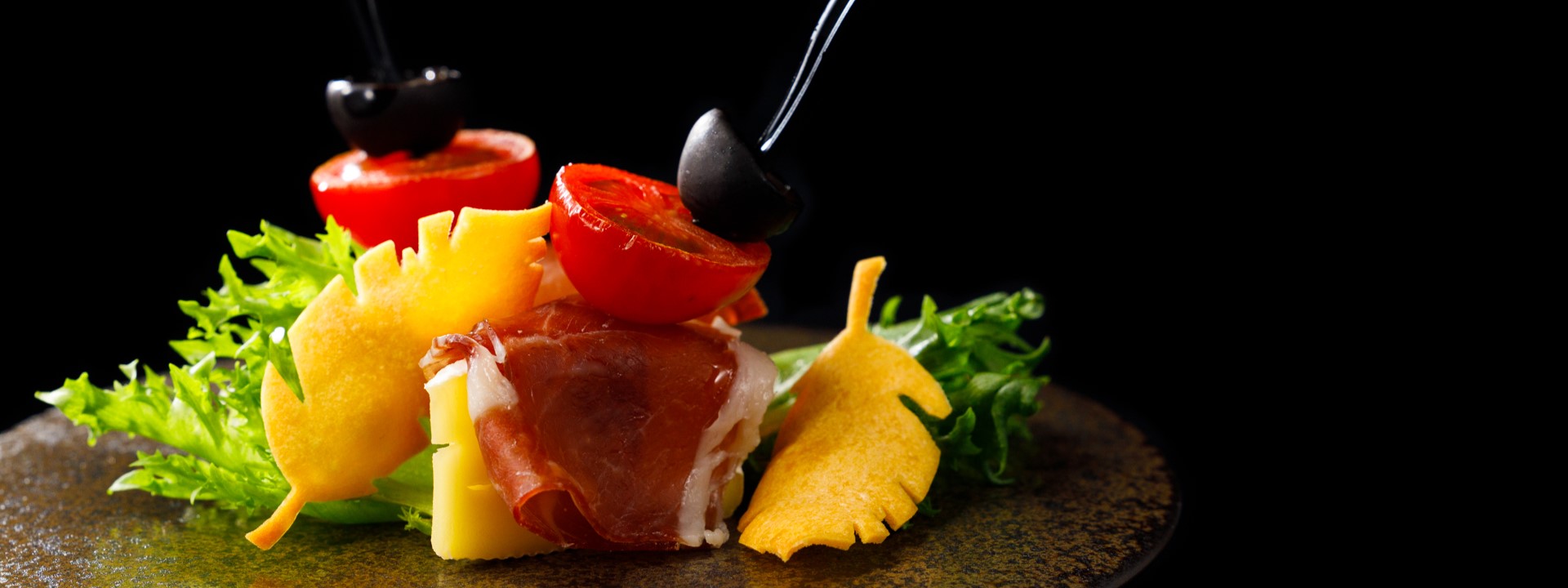 Camembert cheese and prosciutto pinchos