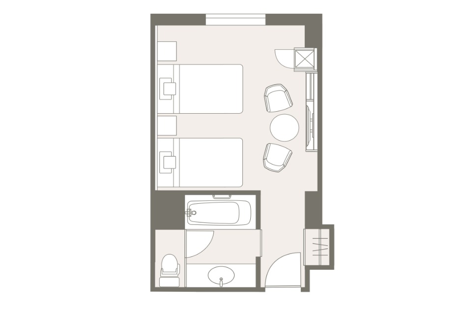 The above is an example of a Deluxe Twin room on the 5th floor. An extra bed cannot be accommodated.