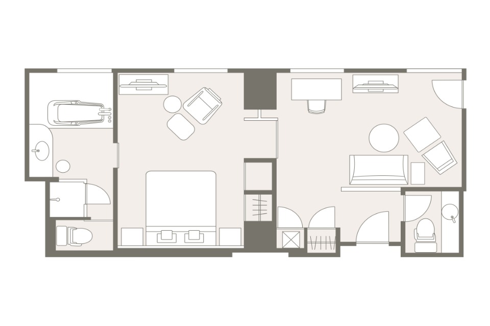 The room layouts shown are just examples. Please note that the size, furniture arrangement, and fixtures vary depending on the room.