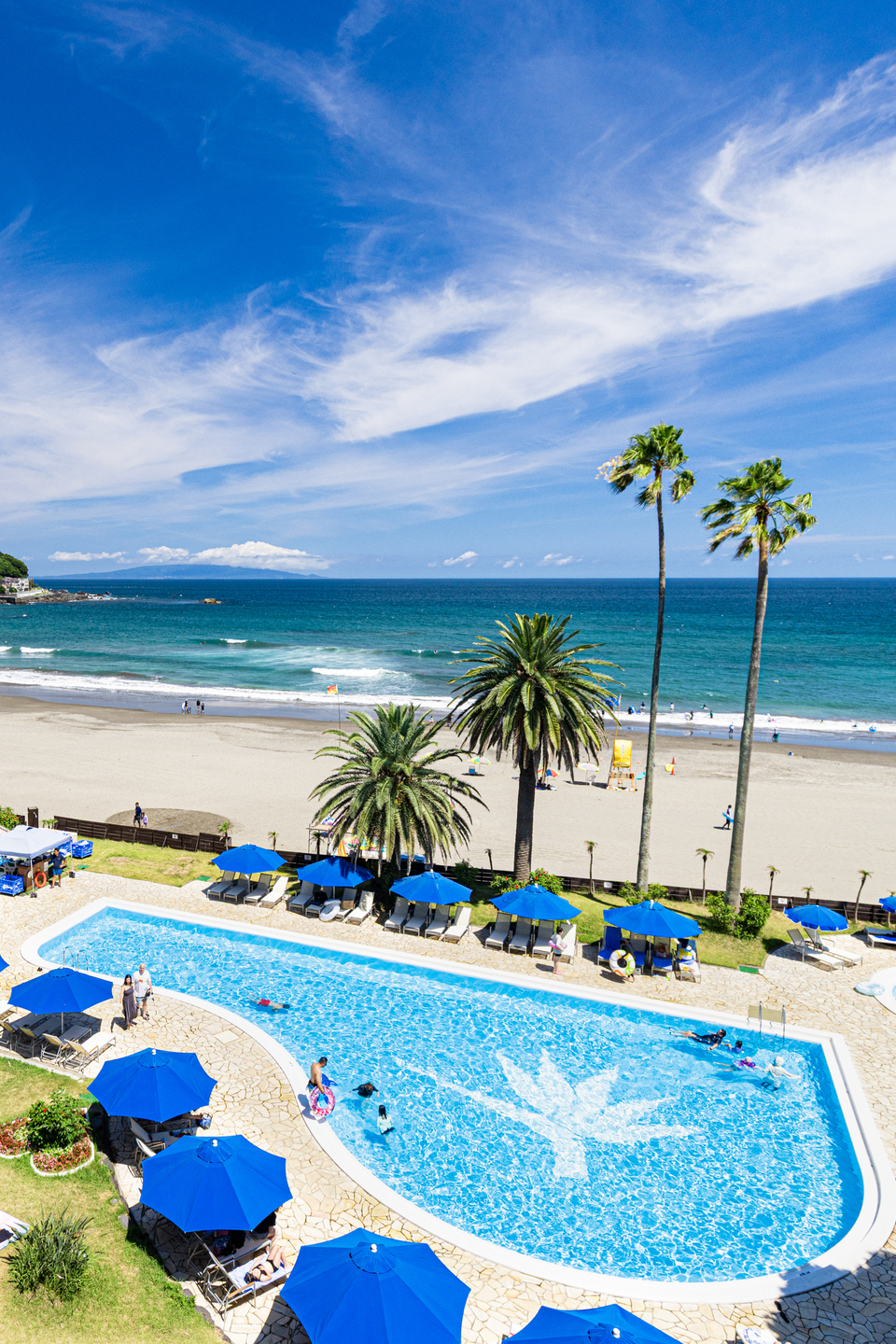 Ocean view rooms overlook the sea of Izu. On clear days, you can see the seven islands of Izu from the balcony.