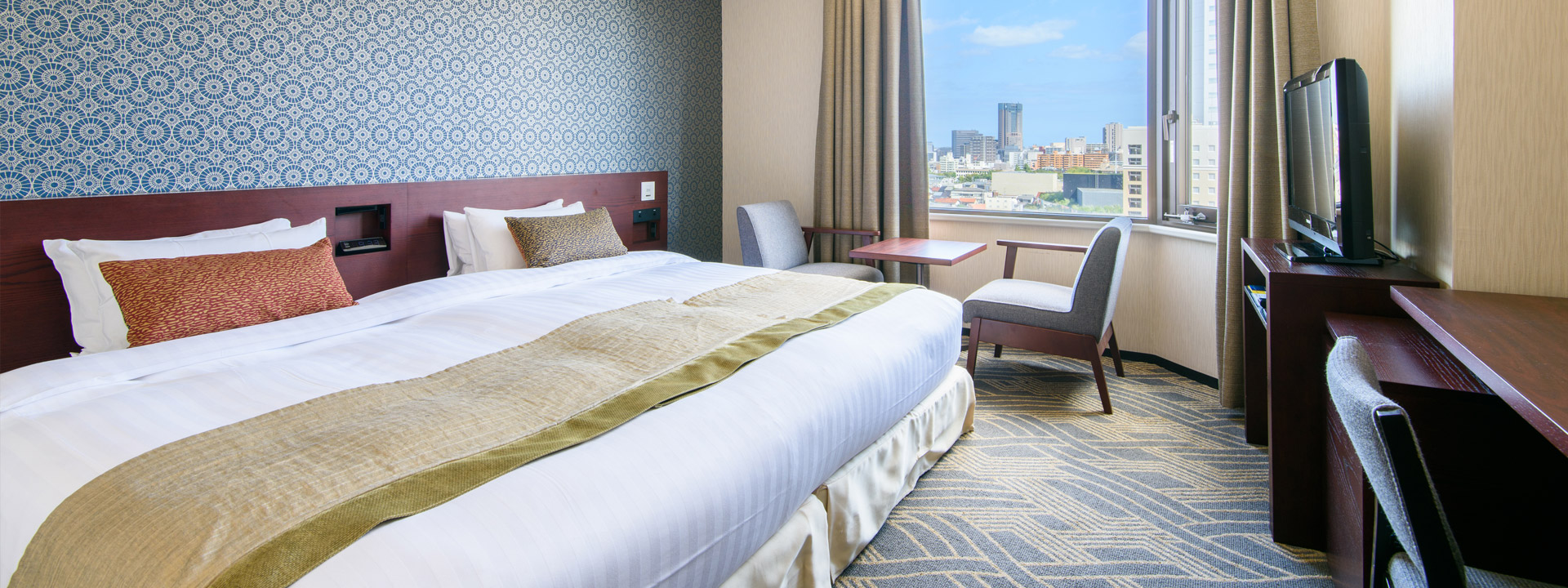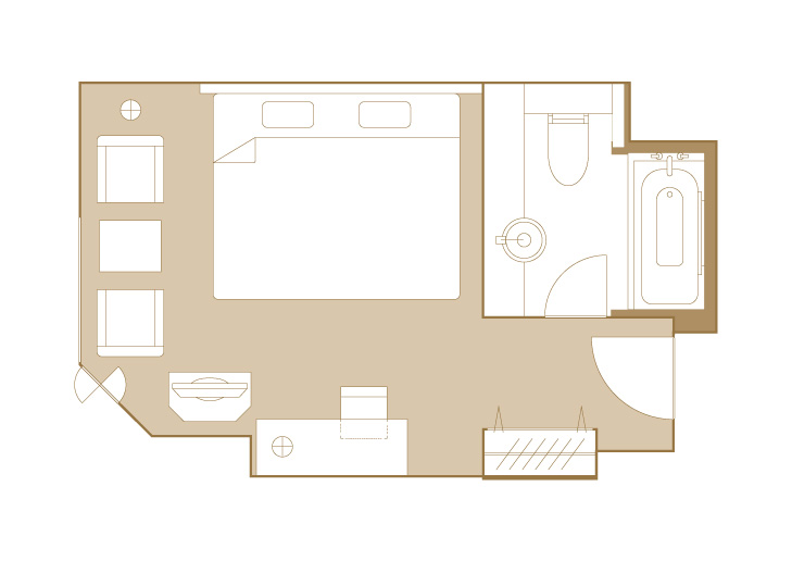 The room layouts shown are just examples. Please note that the size, furniture arrangement, and fixtures vary depending on the room.