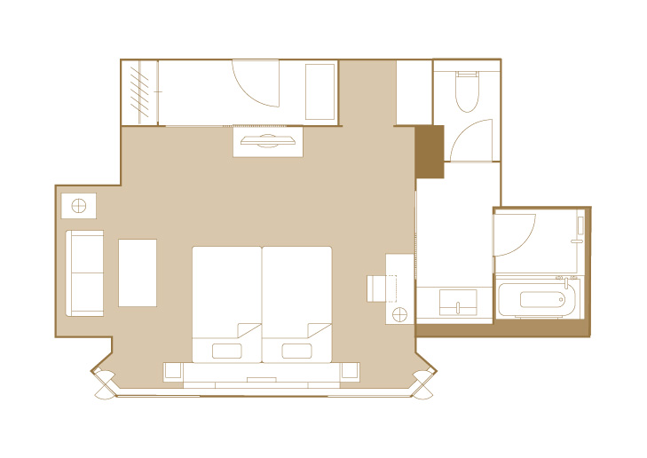 The room layouts shown are just examples. Please note that the size, furniture arrangement, and fixtures vary depending on the room.