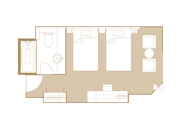 The room layouts shown are just examples. Please note that the size, furniture arrangement, and fixtures vary depending on the room.