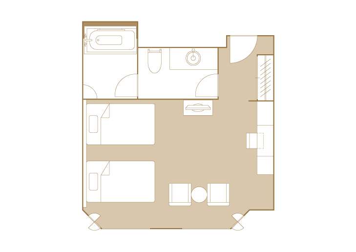The room layouts shown are just examples. Please note that the size, furniture arrangement, and fixtures vary depending on the room.