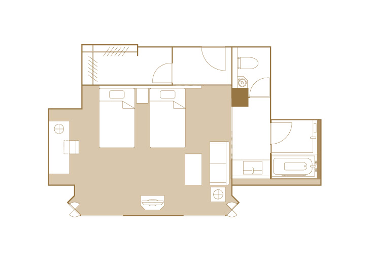 The room layouts shown are just examples. Please note that the size, furniture arrangement, and fixtures vary depending on the room.