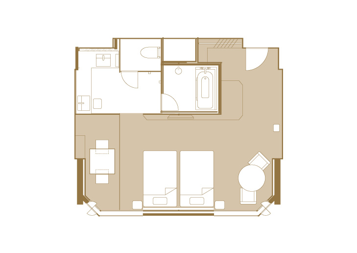 The room layouts shown are just examples. Please note that the size, furniture arrangement, and fixtures vary depending on the room.
