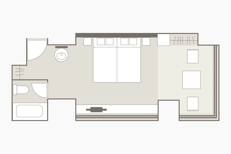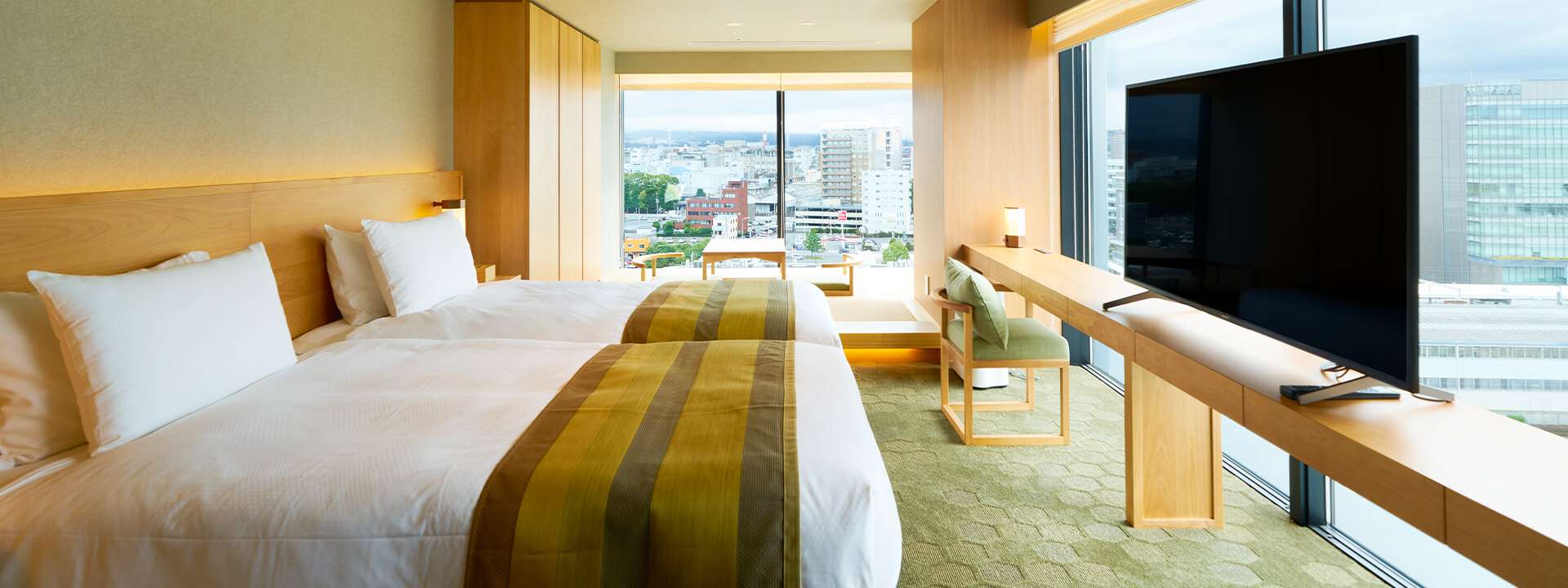 The room layouts shown are just examples. Please note that the size, furniture arrangement, and fixtures vary depending on the room.