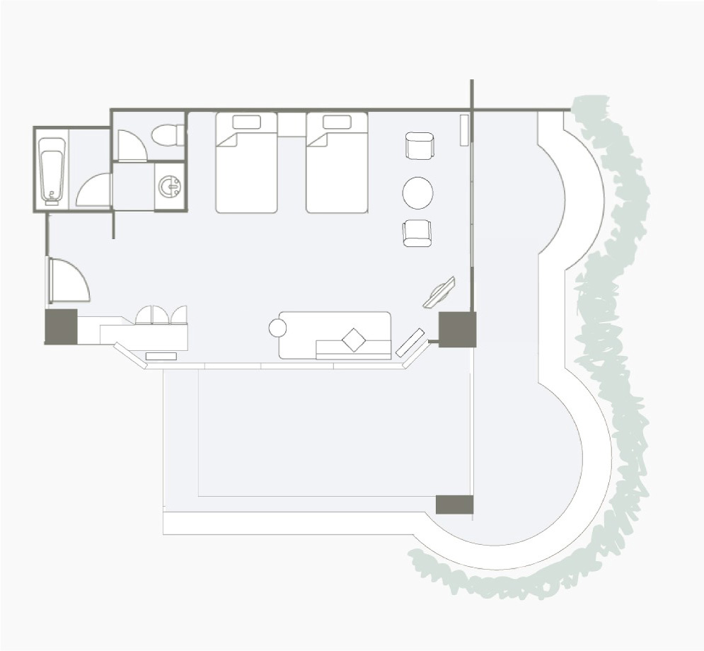 The room layouts shown are just examples. Please note that the size, furniture arrangement, and fixtures vary depending on the room.