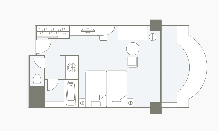 The room layouts shown are just examples. Please note that the size, furniture arrangement, and fixtures vary depending on the room.