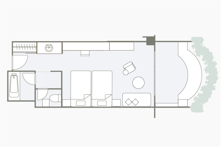 The room layouts shown are just examples. Please note that the size, furniture arrangement, and fixtures vary depending on the room.
