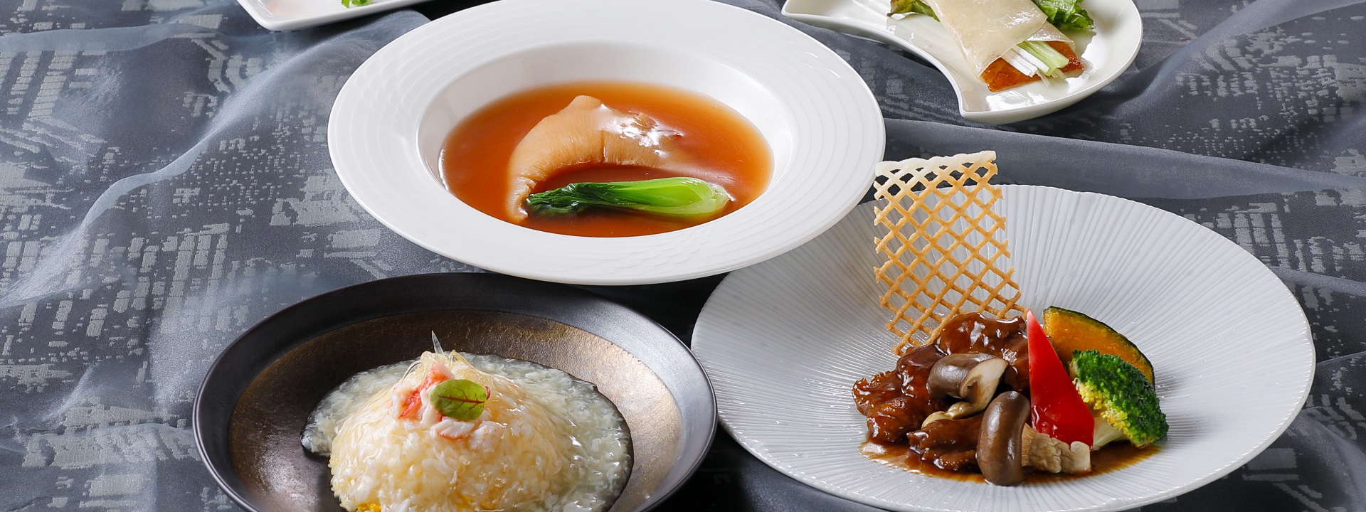 A gorgeous lunch course featuring shark fin, meat, seafood and hors d'oeuvres