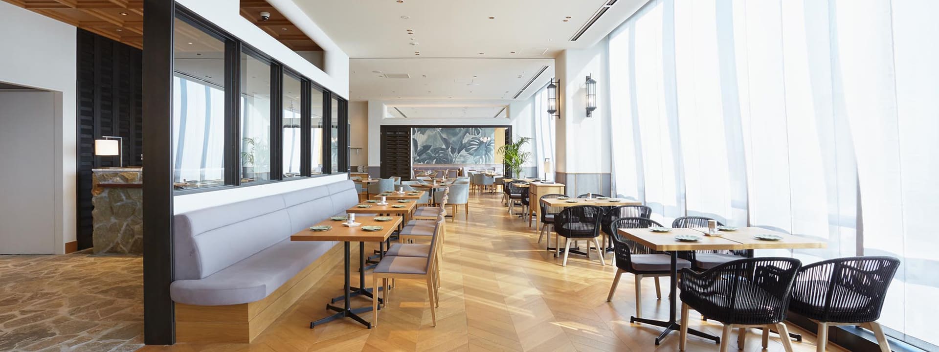 The restaurant "Picnika" on the top floor and 17th floor of the hotel " ". Bright sunlight shines in through the large windows facing Midosuji, and at night, you can enjoy the night view of Osaka, and enjoy a variety of seasonal dishes.