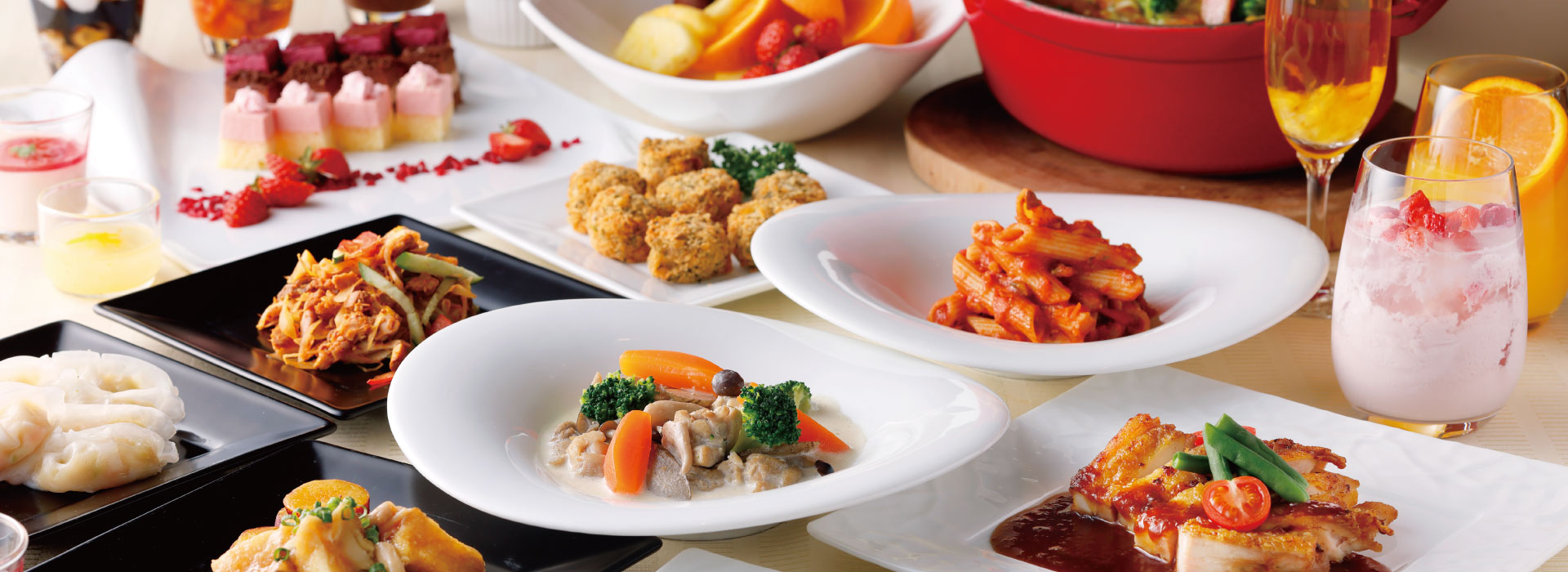 We offer approximately 40 Japanese and Western dishes, including roast Black Angus beef and self-serve rice bowls that you can enjoy by topping them with your favorite ingredients.