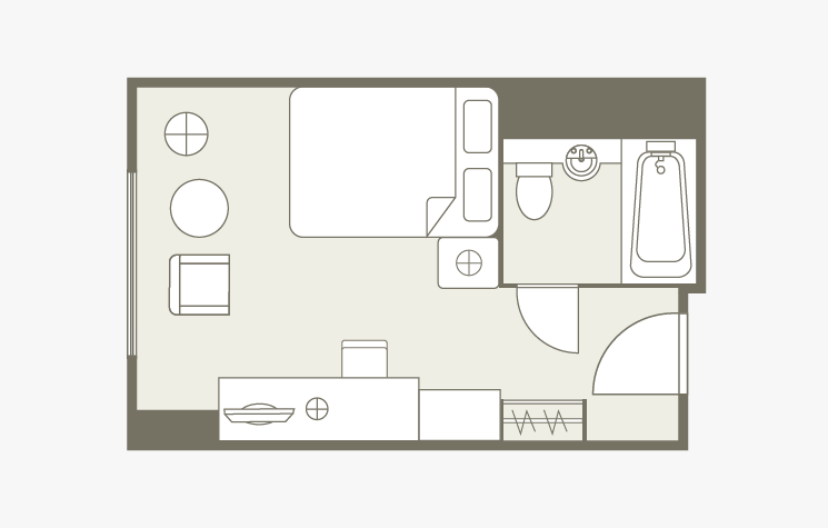 The room layouts shown are just examples. Please note that the size, furniture arrangement, and fixtures vary depending on the room.