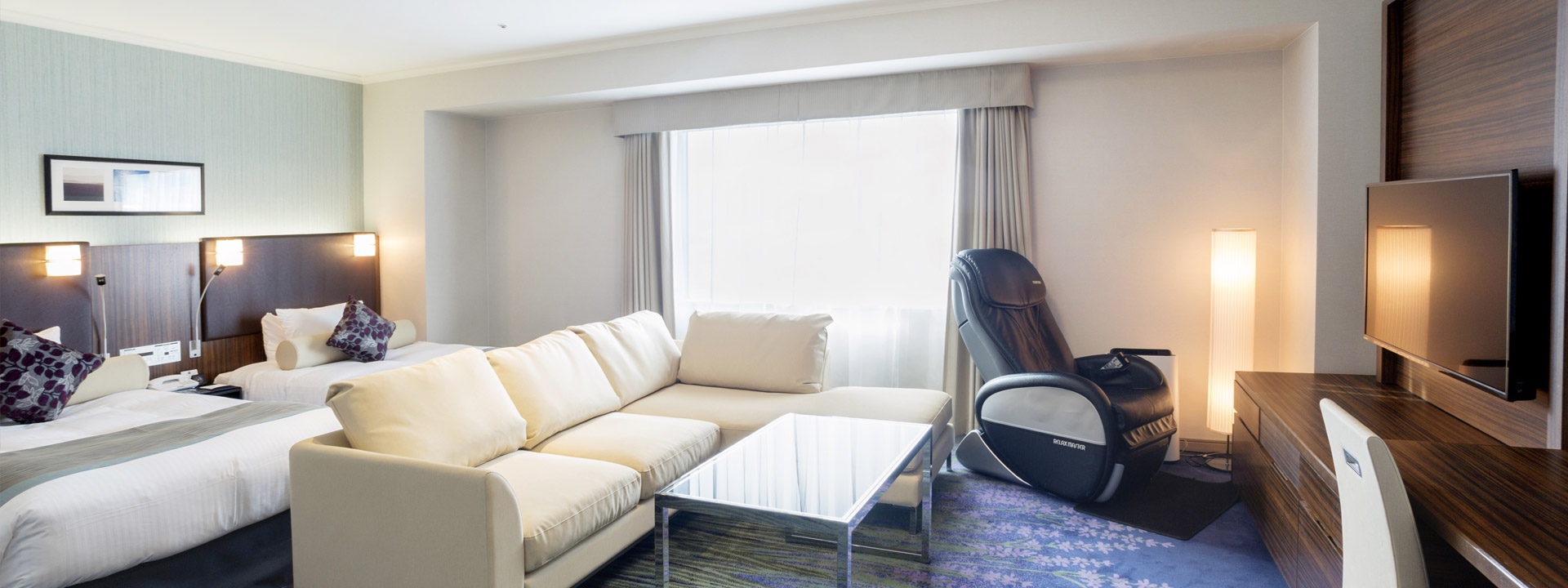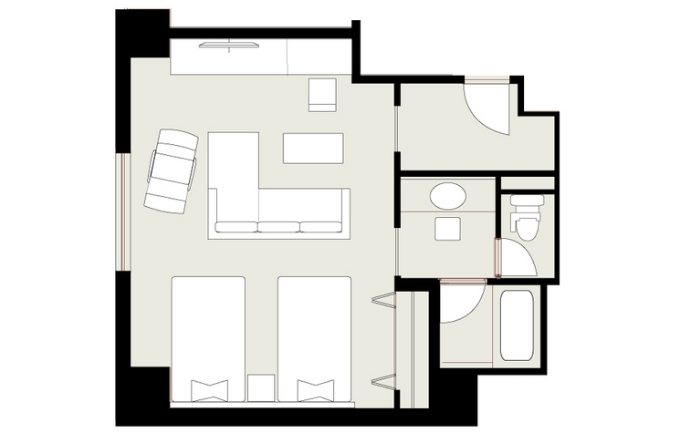 The room layouts shown are just examples. Please note that the size, furniture arrangement, and fixtures vary depending on the room.