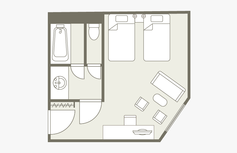 The room layouts shown are just examples. Please note that the size, furniture arrangement, and fixtures vary depending on the room.