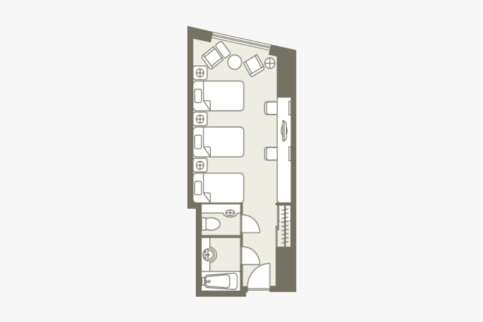 The room layouts shown are just examples. Please note that the size, furniture arrangement, and fixtures vary depending on the room.