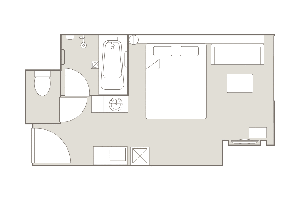 The room layouts shown are just examples. Please note that the size, furniture arrangement, and fixtures vary depending on the room.