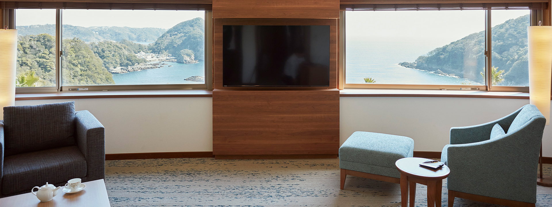 ●Tea set ●Slippers ●Bath towel ●Face towel ●Body soap ●Facial & hand soap ●Shampoo ●Conditioner ●Toothbrush set ●Razor ●Hairbrush ●Body towel ●Cotton swabs ●Nightwear