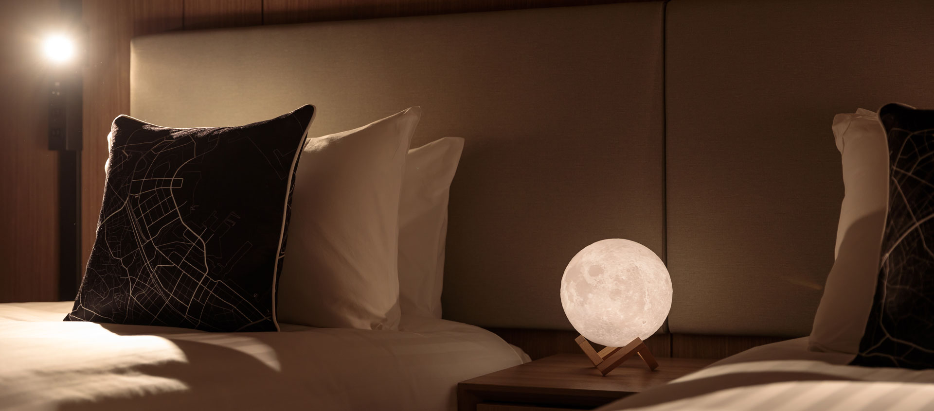 The giant moon object floating above the bar counter in the lobby was created based on NASA's lunar surface image data. Like the gravitational force of the moon, it connects people and various scenes.