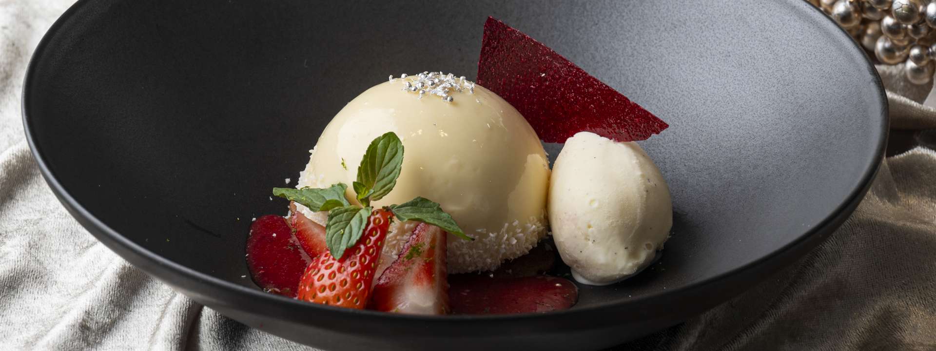 「冬の季節」にふさわしく、ホリデーシーズンを象徴する赤と白のコントラストが映えるデザートをご提供します。