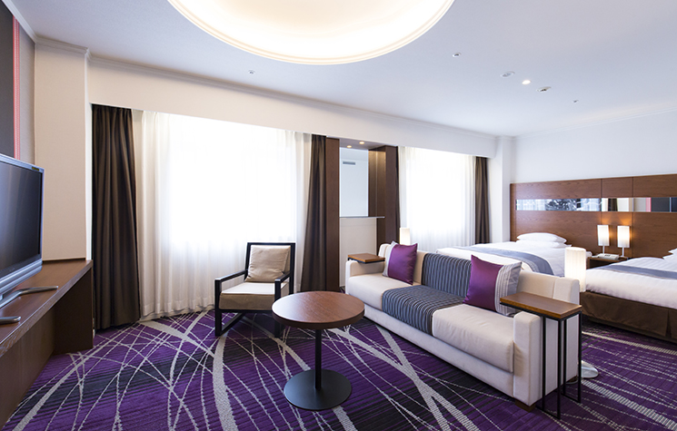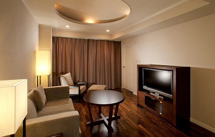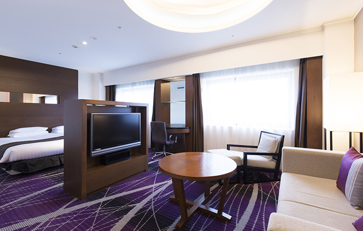 ベッドルームとリビングとに分かれた間取り。お部屋の広さとスイート特有の落ち着いた雰囲気が好評です。