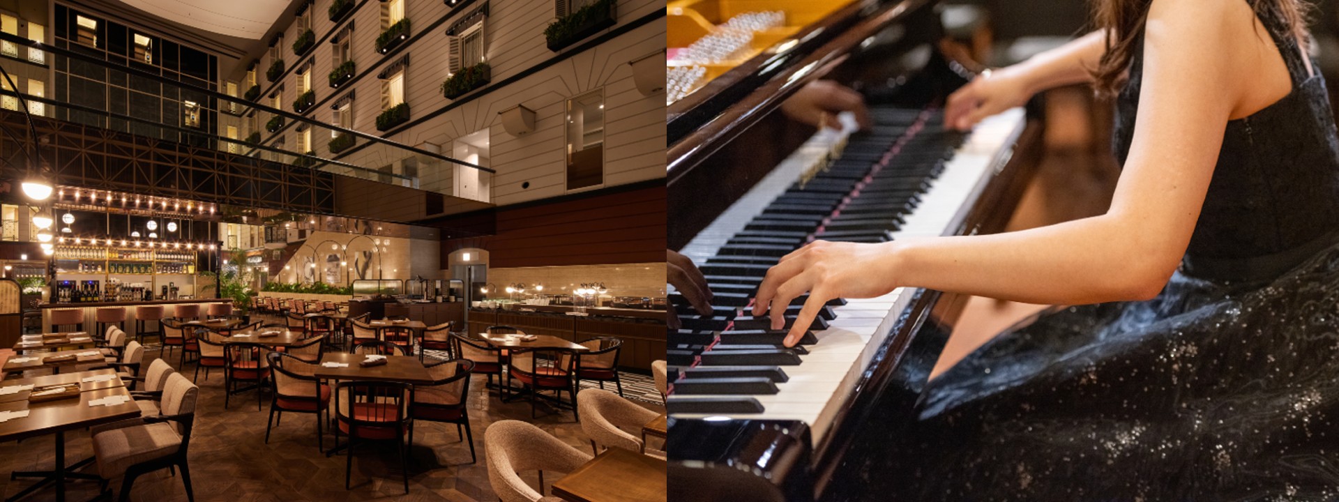 ラウンジ&ダイニングSORAEにてピアノを中心とした楽器の生演奏がお楽しみいただける