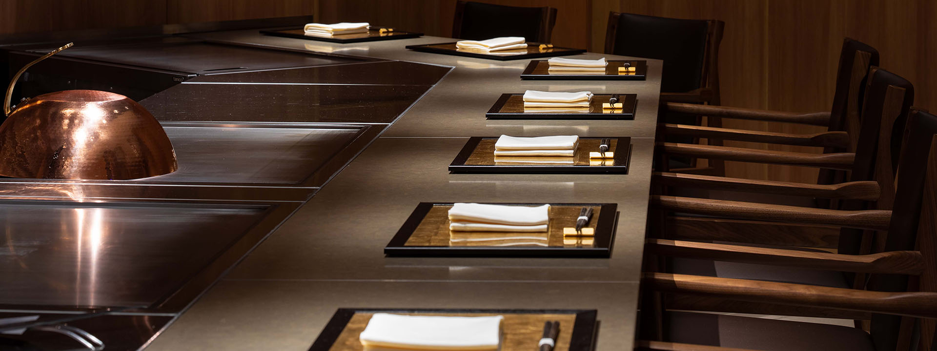철판구이와 스시에 연결되는 외관 부분은 부드러운 빛에 떠오르는 수제 일본 종이의 표정과 격자에 의한, 일본의 미의식을 느끼는 모던한 디자인. 발밑에는 CERULEAN TOWER TOKYU HOTEL의 메인 로비에 펼쳐지는 한좌정 정원(정원 디자이너 시노노 슌 아키사쿠)에서 인스파이어를 얻어 이 외관 부분에 연결을 갖게하고 있습니다.