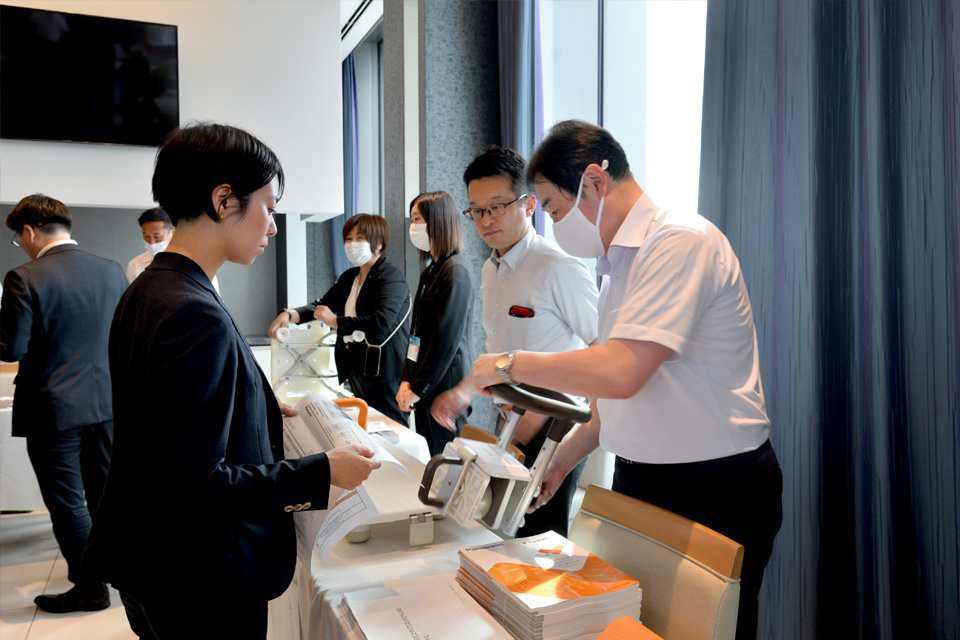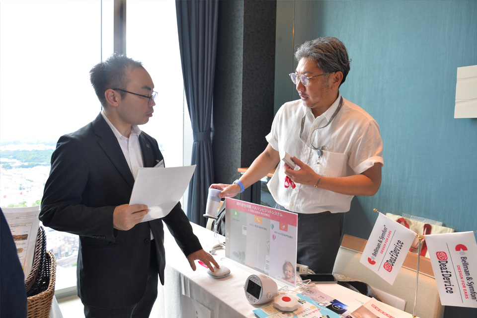 버스용 미끄럼 방지 매트, 버스 그립, 샤워 의자, 화장실용 난간, 청각장애인 숙박용 기기, 바이킹 카트를 진열, 각각의 기업에게 올바른 사용 방법이나 사용시의 주의점을 설명해 주셨습니다.