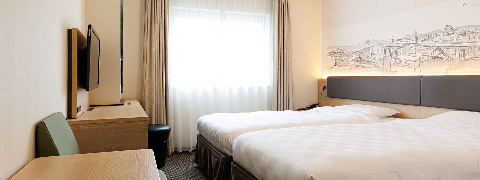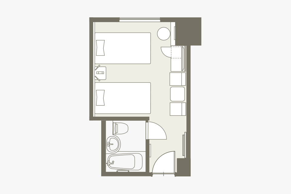 방의 배치는 어디까지나 일례입니다. 면적이나 가구 배치, 비품 등은 객실에 따라 다르므로 미리 양해 바랍니다.