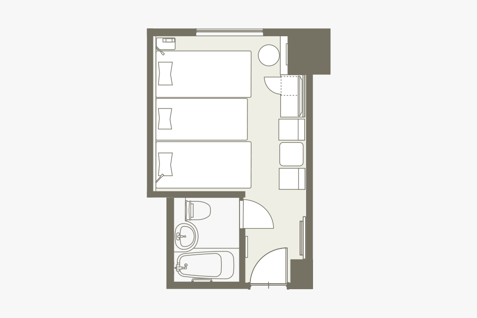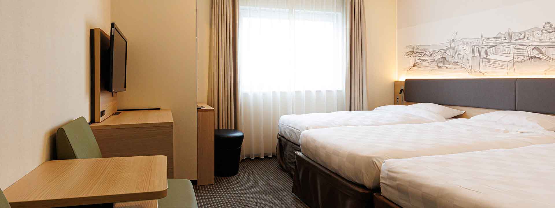 방의 배치는 어디까지나 일례입니다. 면적이나 가구 배치, 비품 등은 객실에 따라 다르므로 미리 양해 바랍니다.