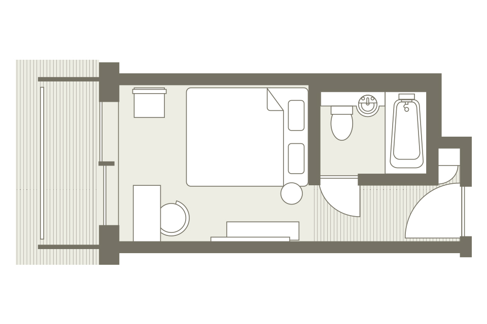 방의 배치는 어디까지나 일례입니다. 면적이나 가구 배치, 비품 등은 객실에 따라 다르므로 미리 양해 바랍니다.