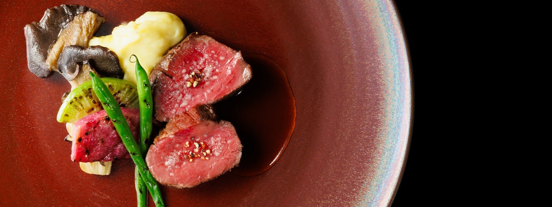 국산 소 필레 고기의 신슈 와인 마리네 계절 야채와 함께