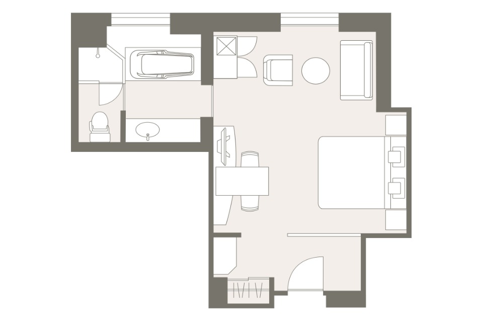 방의 배치는 어디까지나 일례입니다. 면적이나 가구 배치, 비품 등은 객실에 따라 다르므로 미리 양해 바랍니다.