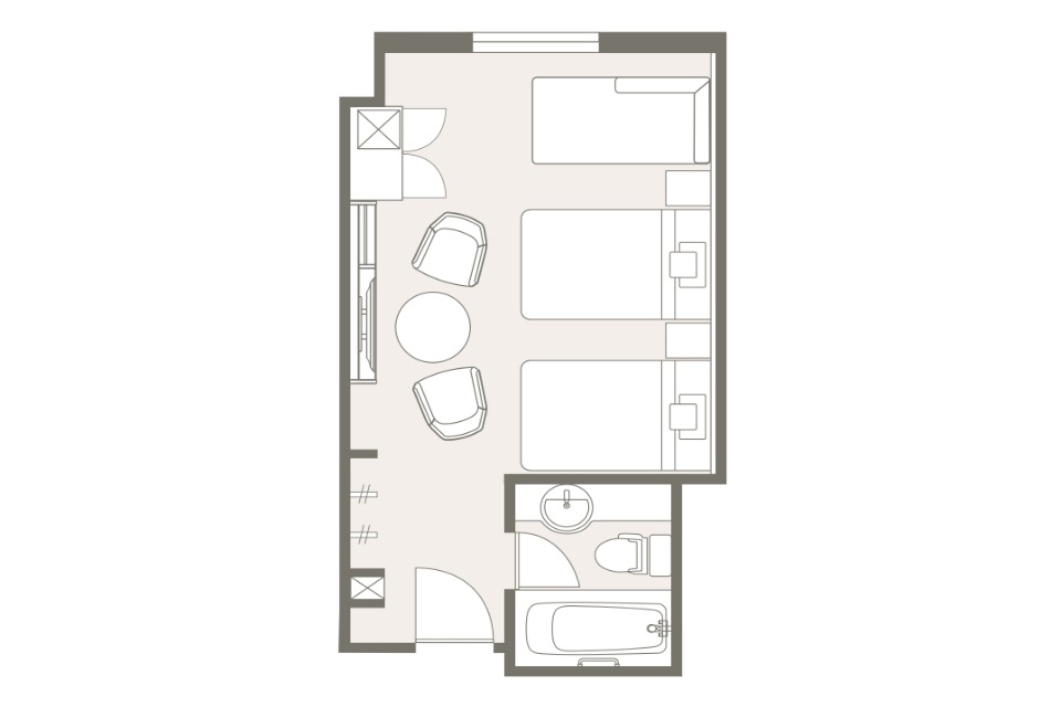 방의 배치는 어디까지나 일례입니다. 면적이나 가구 배치, 비품 등은 객실에 따라 다르므로 미리 양해 바랍니다.