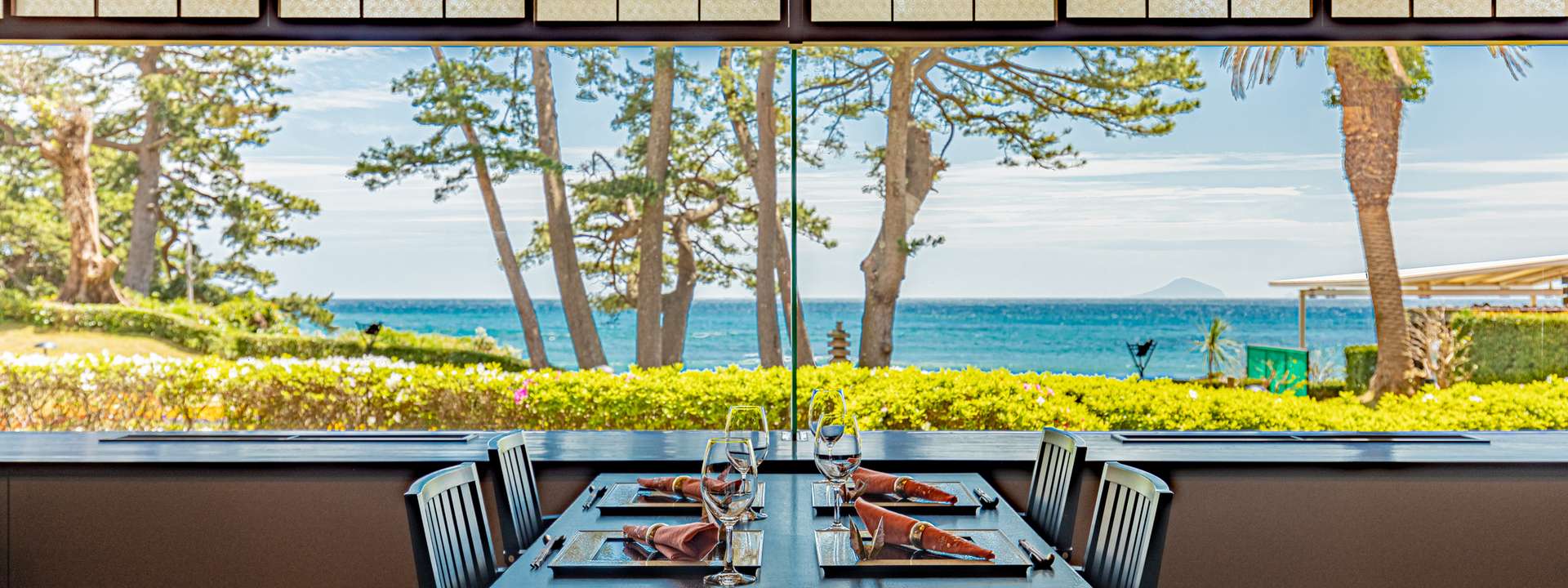 수기야 구조의 따뜻한 일본식 모습 속에서 이즈 나나시마의 경치를 바라보면서…