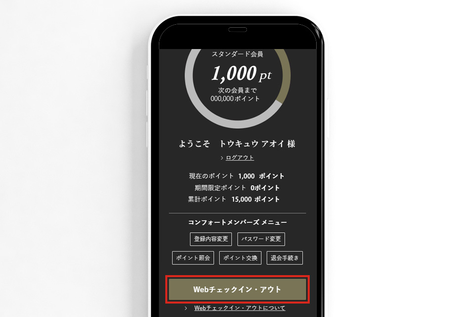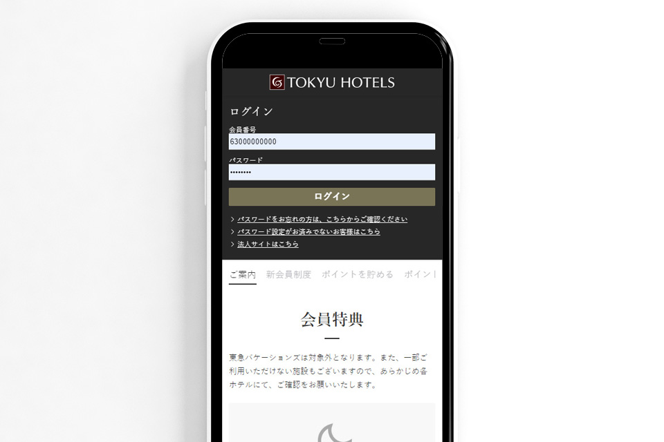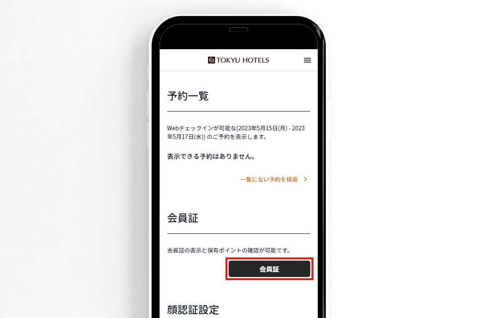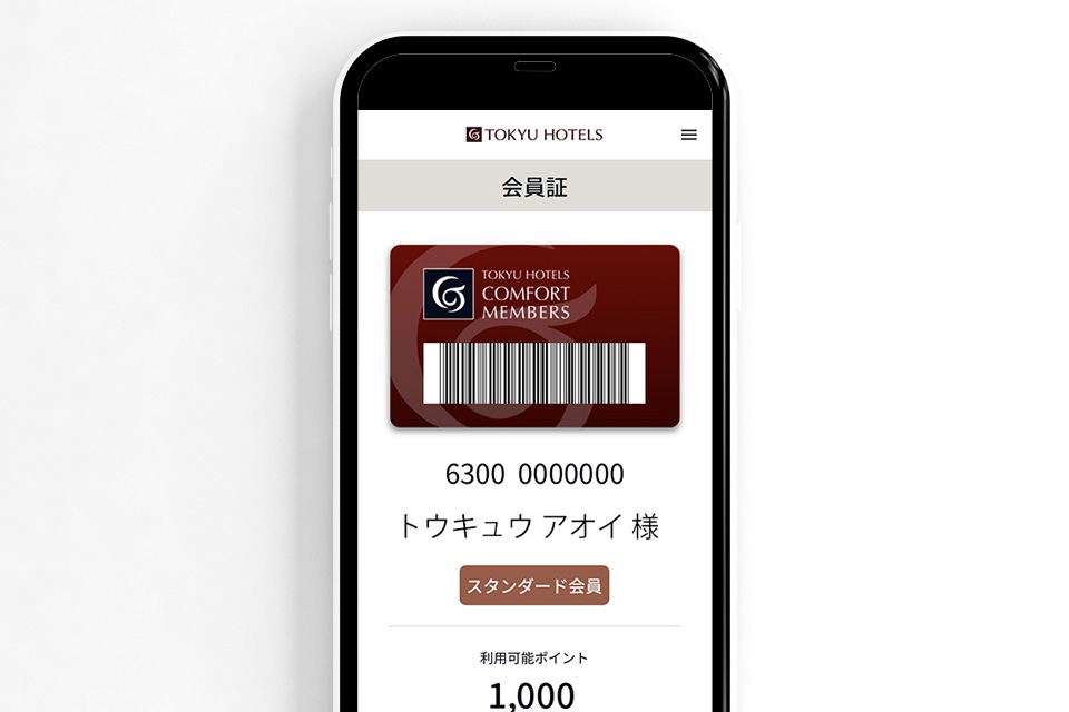 카드 회원증과 유사한 디지털 회원증을 사용할 수 있습니다. 웹 체크인 체크아웃 화면에서 표시 가능한 디지털 회원증 외에도 TOKYU HOTELS 공식 앱에도 디지털 회원증 기능이 구현되었습니다. 스마트 폰 등으로 표시시켜 사용하실 수 있습니다.