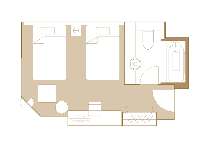 방의 배치는 어디까지나 일례입니다. 면적이나 가구 배치, 비품 등은 객실에 따라 다르므로 미리 양해 바랍니다.