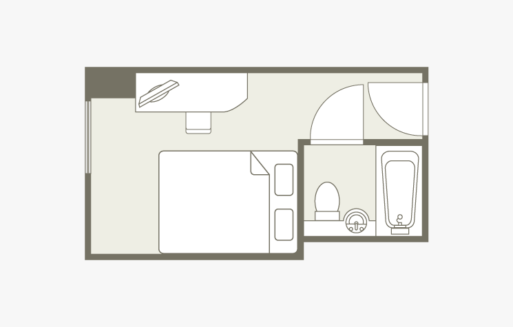 방의 배치는 어디까지나 일례입니다. 면적이나 가구 배치, 비품 등은 객실에 따라 다르므로 미리 양해 바랍니다.