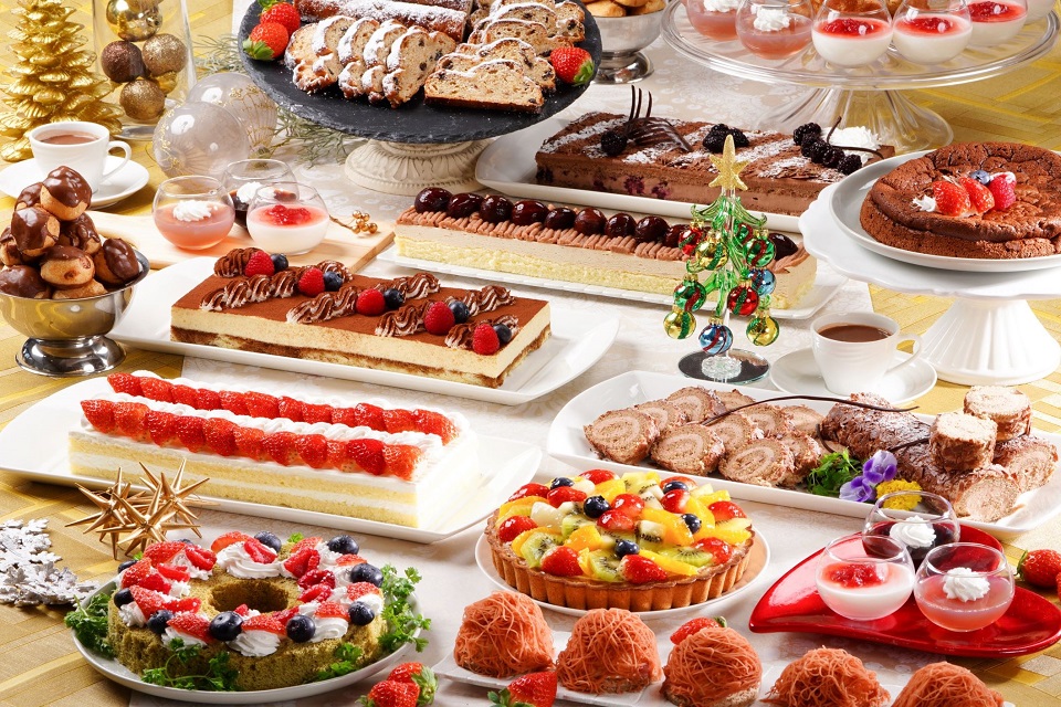 중심은 "갓 짜낸 아마오우 딸기 극세 몽블랑"입니다. 섬세한 1mm 두께의 몽블랑에 부드러운 프로마주 블랑이 겹겹이 쌓여 있습니다. 또한 크리스마스 분위기를 기대할 수 있는 '부시 드 노엘', '말차 쉬폰 케이크 화환', '슈톨렌' 등 호화로운 디저트가 라인업되어 있습니다. 달콤한 과자 사이에는 겨울에 딱 맞는 따뜻한 간식도 준비되어 있습니다.