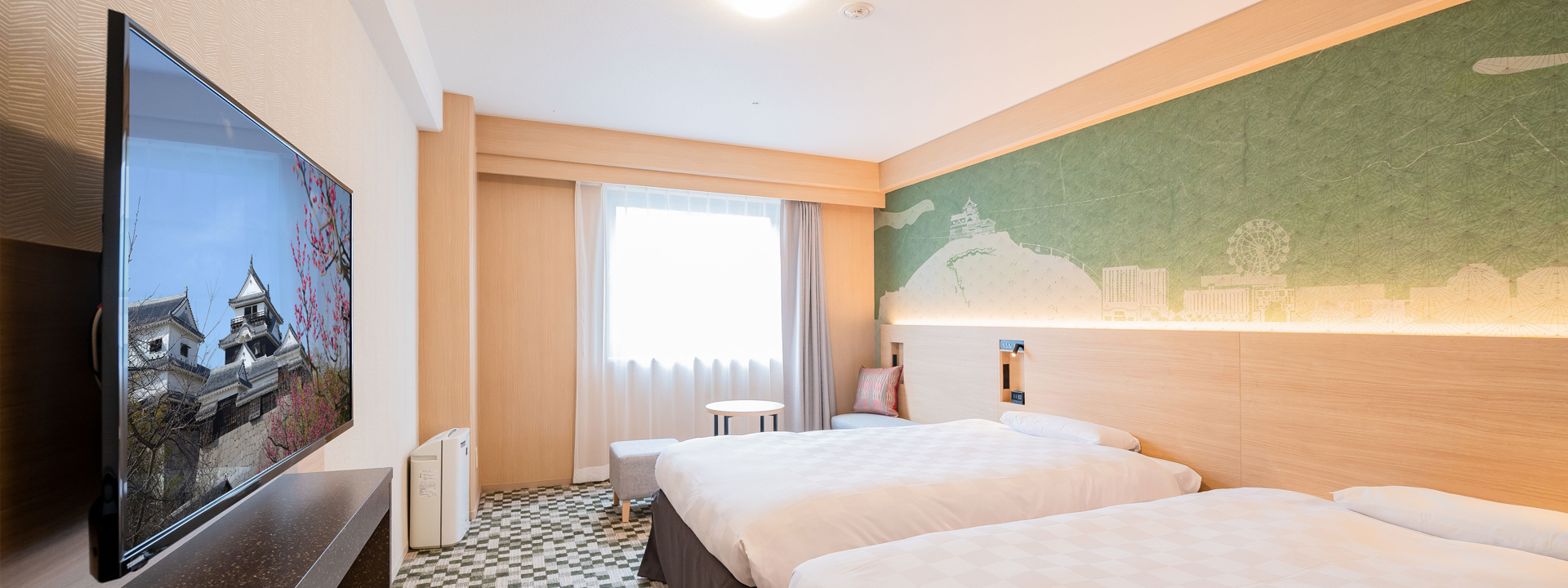 방의 배치는 어디까지나 일례입니다. 면적이나 가구 배치, 비품 등은 객실에 따라 다르므로 미리 양해 바랍니다.